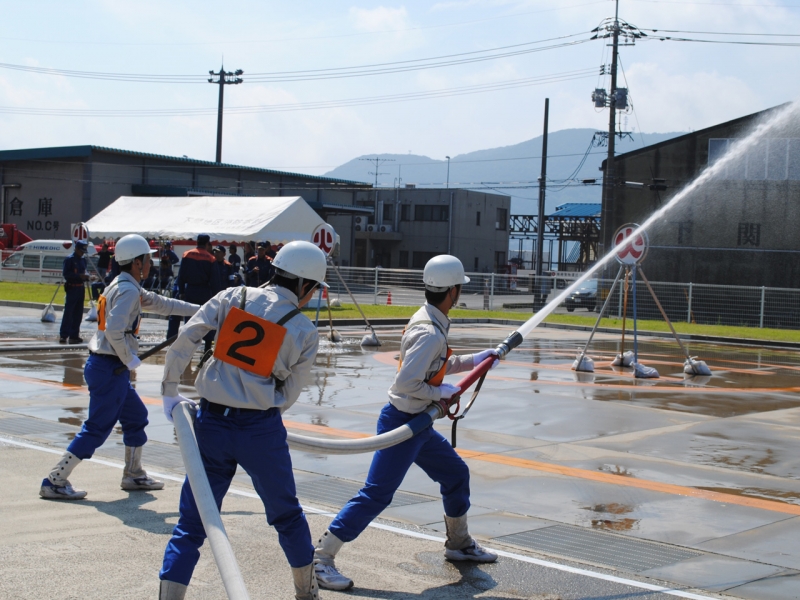 「安全で安心なまちづくり」をスローガンに防火防災意識の普及を図るため下関市消防局が開催する当事業を支援するとともに事業所を対象に消火競技大会(屋内消火栓の部)を開催しています。