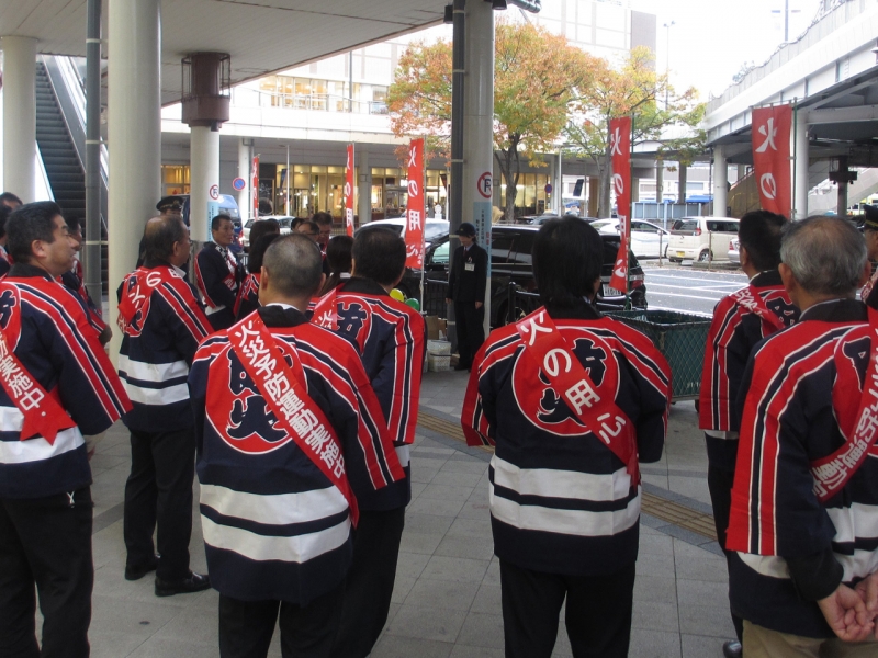 年2回の火災予防運動初日に会員事業所有志による火災予防のための街頭広報を行っています。